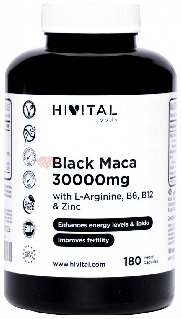 Hivital Maca Neagra 30000mg. x 180 capsule VEGANE - mentine fertilitatea + CADOU Organizator medicamente 28 casete |